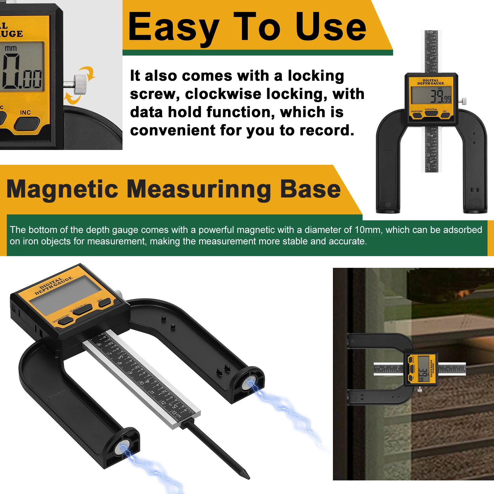 0-80mm Woodworking Depth Ruler Digital Tablesaw Height Ruler LCD Display Vernier Caliper 3 Unit Modes Auto Power Off Magnetic