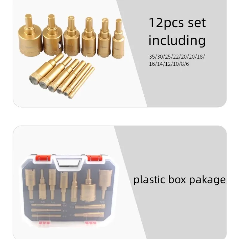 Diamond gold12pcs 6-35mm Brazing drill bit set box Angle Grinder Hole Opener Glass Marble Granite Ceramic Saw Kit Stone Reaming