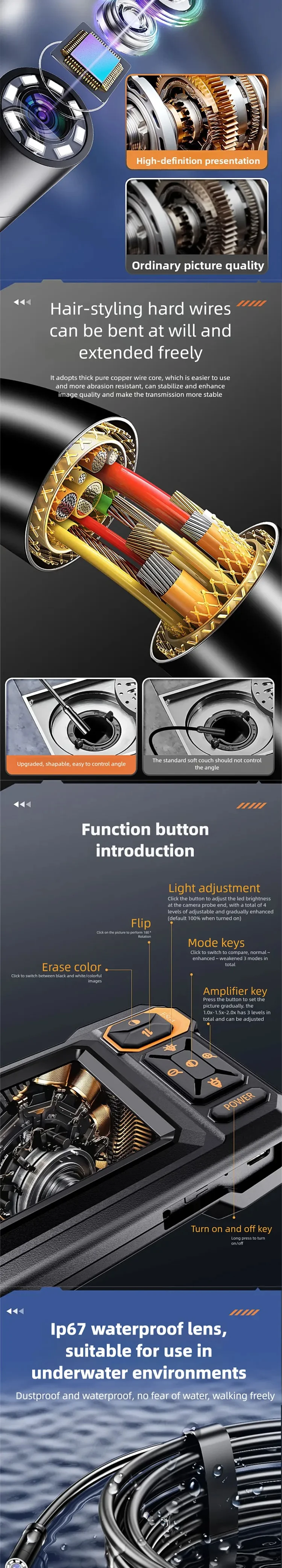 Waterproof level: IP68 (only for lens cable)